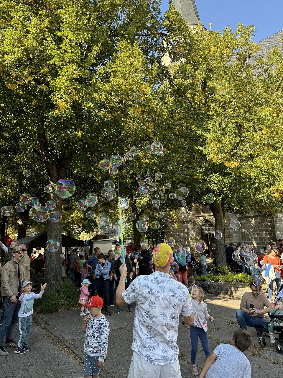 Für künstlerische Darbietungen sorgt die Seifenblasenshow von Feuer oder Wasser. Wer mag kann die Welt mit dem Zirkus Zappelini zum Trommeln bringen. Mit der Jugendkunstschule und schrankenlos kann kreativ gedruckt oder gekocht werden. Mit der Berufsfeuerwehr Nordhausen hingegen geht es heiß her und es kommt eine Feuerlöscherübungsanlage zum Einsatz.