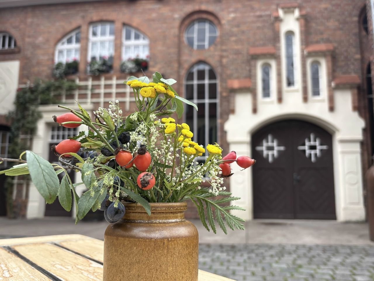 Generell ist auch kulinarisch einiges zu finden in dem 1908 erbauten Ensemble. Das Team des Café Central und des Café Felix übernimmt die Grundversorgung, reist unter anderem mit einer leckeren Kürbissuppe (auch für Vegetarier geeignet) an. Dazu gibt es leckere Ingwer-Cocktails an der Echter Nordhäuser Bar. Und natürlich öffnet auch der Hofladen seine Türen.