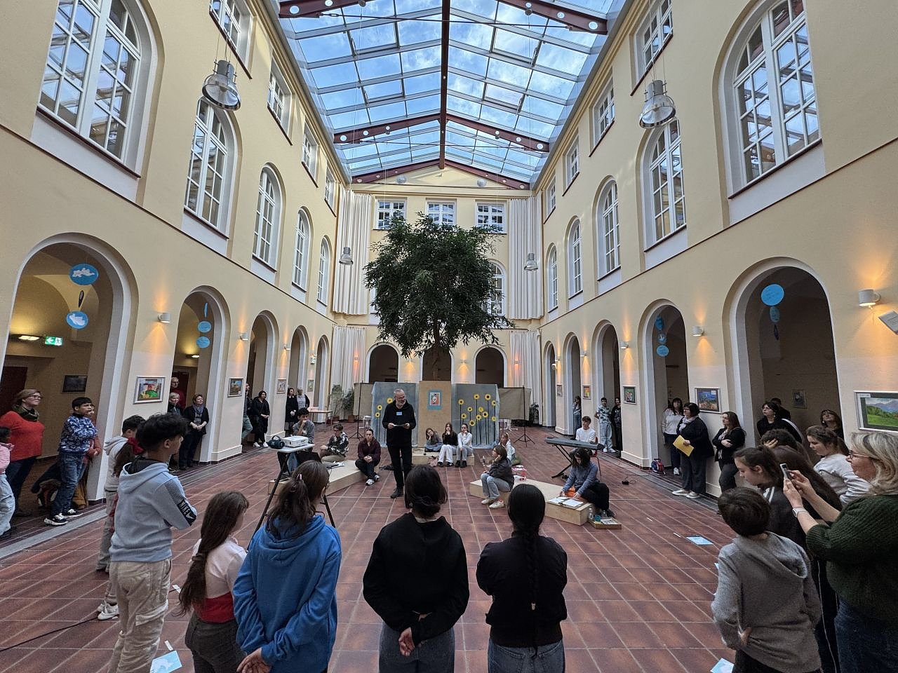 Nordhausen (psv) Heute wurde im Atrium der Petersbergschule die Ausstellung Sunflower Dreams Project eröffnet. Die Bilder stammen von ukrainischen Kindern, die Angst, Verlust, Flucht, Zerstörung, Luftschutzsirenen und Nächte voller Gefahr erfahren mussten. Doch inmitten dieser Dunkelheit wählten die Kinder Farben. Farben, die vom Schmerz erzählen, aber auch vom Wunsch nach einem Morgen ohne Sirenen, nach einer Welt, in der Häuser wieder Orte der Geborgenheit sind und nicht der Gefahr.